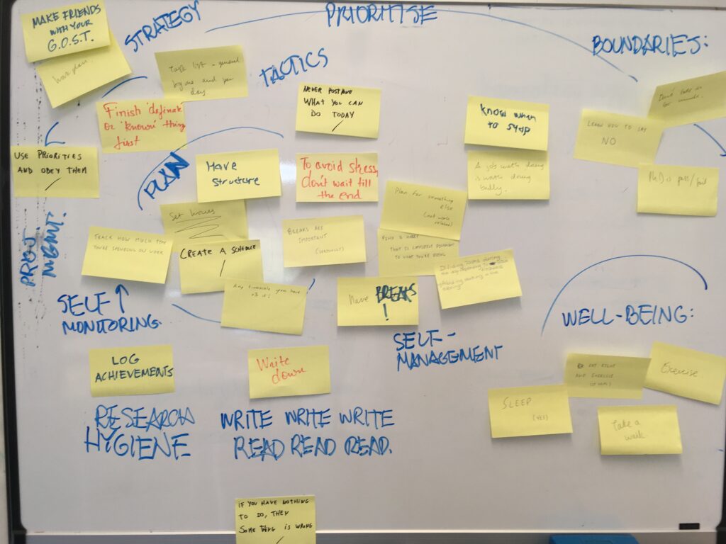 Students ask: How can I manage all the work in time? And how can I balance the PhD with everything else? How do I spread the workload evenly, rather than let it gravitate around deadlines?